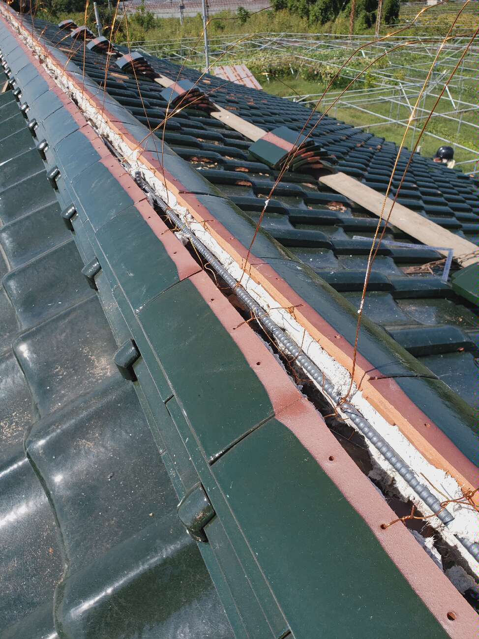 長野県中野市で瓦屋根の棟の取り直し工事!雨漏りの被害を防ぎます