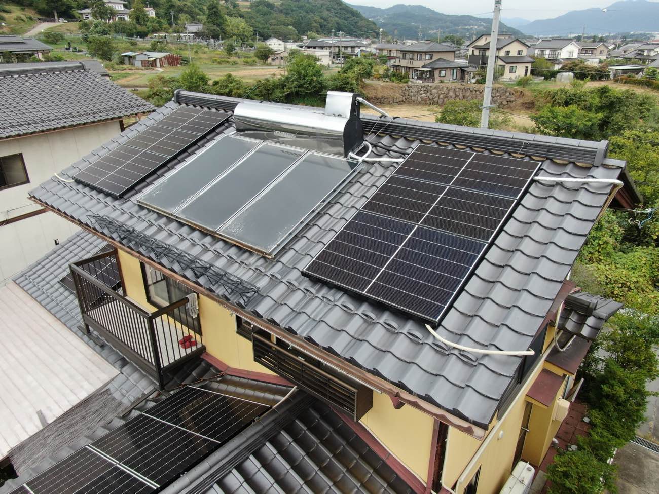 今回は、温水器が壊れたところに追加の太陽光パネルを設置して頂きました。これで