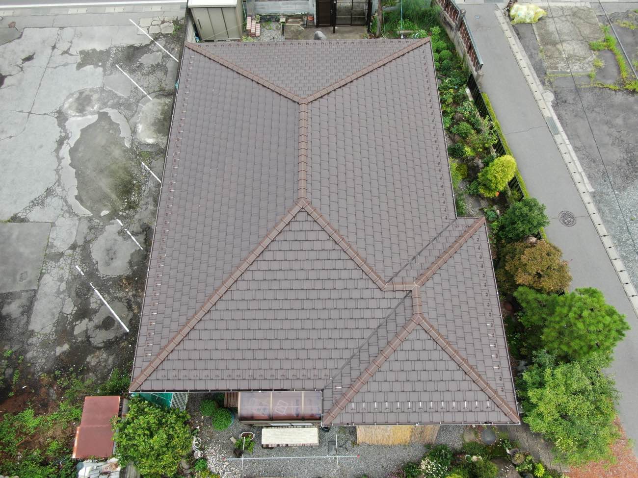 屋根葺き替え 瓦屋根から天然石付き鋼板屋根にリフォーム